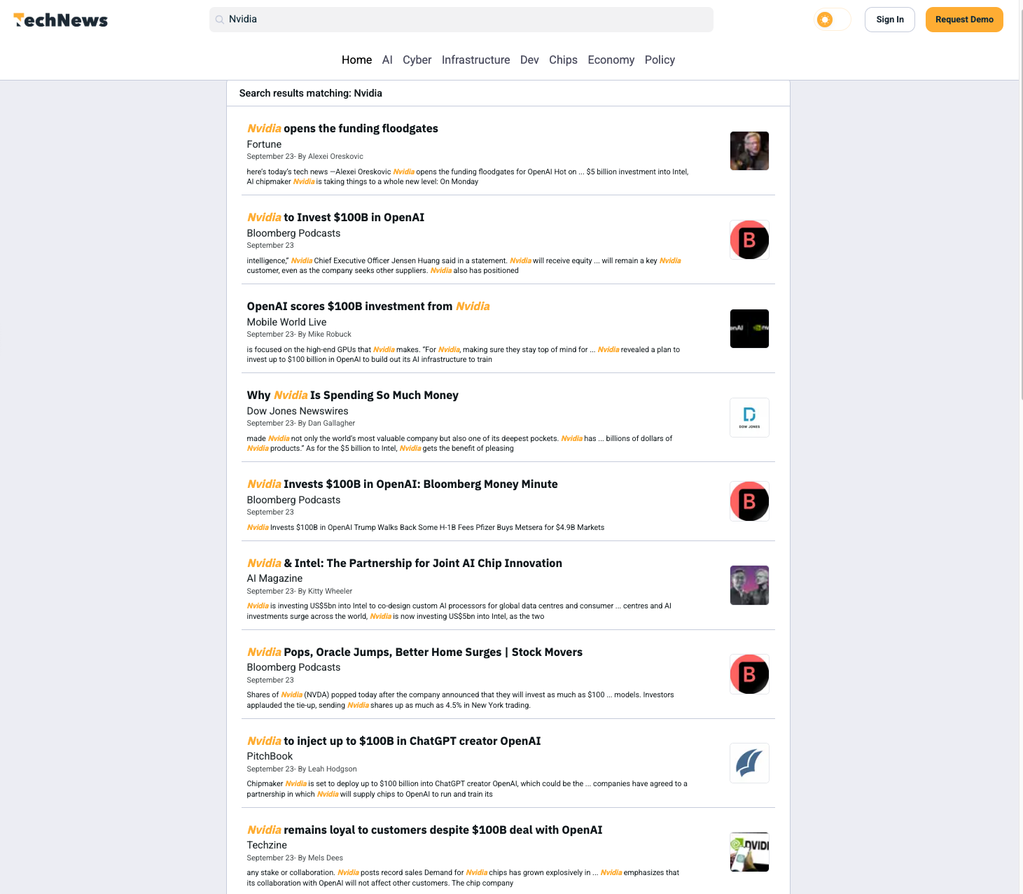Each weekday, our homepage will feature the top five most-read stories across seven categories—AI, Cybersecurity, Infrastructure, Developer, Chips, Economy & Policy. Each category has dedicated sections that go deeper into curated content from sources like business press, newsletters, YouTube, and funding news. We’ve also expanded search, enabling users to apply advanced operators for precise, topic-driven discovery.